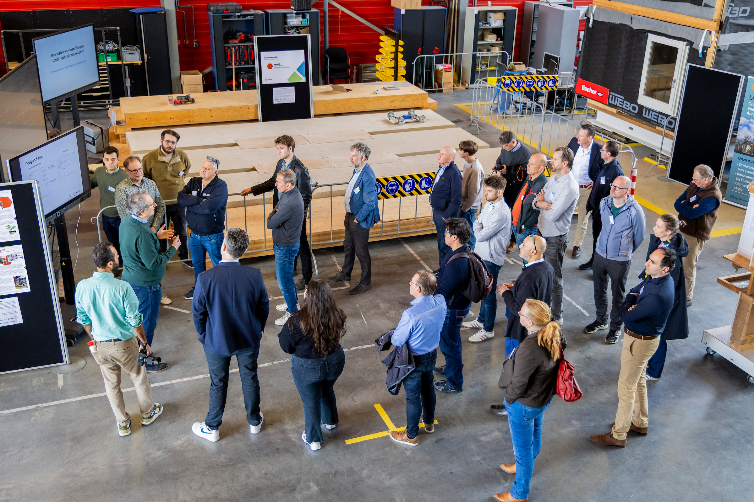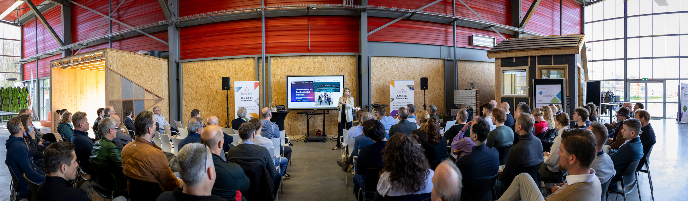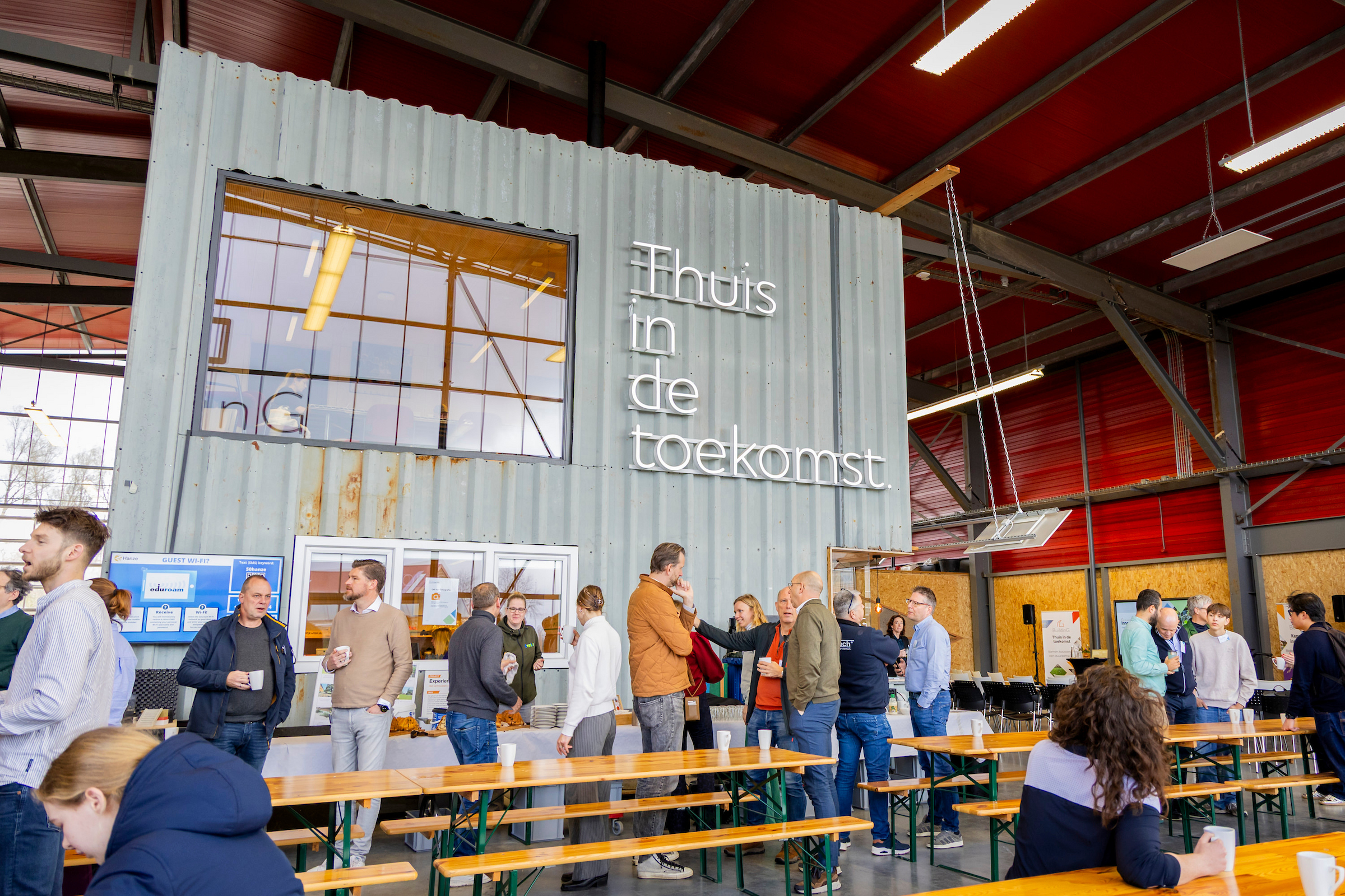 Tussen de bedrijven door was er volop ruimte voor ontmoeting op de innovatiemarkt, waar onder andere de gepatenteerde oplossingen van ReBuildit en de pioniers van het Innovatiefonds te zien waren.